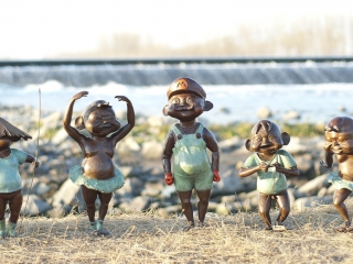 The bronze sculptures of Zhang Jian Long are playful and whimsical, each of the boys possess their own strong character that show through their facial expressions and comical positions. They remind us of the carefree, natural spirit of childhood.