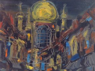 In a back alley and quiet narrow lane; two people sit and converse at leisure. The atmosphere of the scene is tranquil and features of the building are depicted in detail - ventilation pipes, square windows and awnings. The peace that pervades the scene is probably at odds with the raucous and noisy atmosphere inside the buildings themselves - a precursor of calmness compared to the ordeal one faces within.