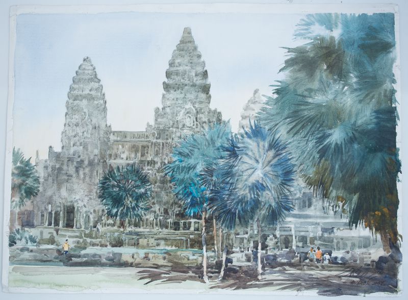 Taking an unusual angle of the historic Angkor Wat, Ong Kim Seng depicts both the scorching sun of Cambodia and sparsely scattered trees which provide welcoming shade. Ong brings out the intricacies of Angkor Wat with sure strokes to define the magical place through his own perspective, creating poetic grandeur and expressiveness. Angkor is one of the most important archaeological sites in Southeast Asia that spans 400 square kilometres of temples, reservoirs and canals.