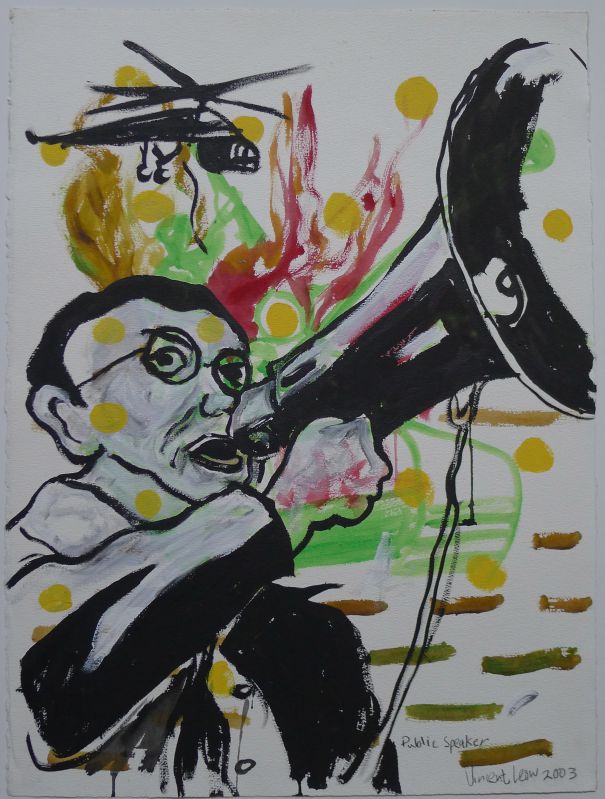 Vincent Leow (b. 1961) is one of Singapore's leading contemporary artists. Celebrated as a l'enfant terrible of the Singapore art community, Vincent Leow is a pivotal figure in the alternative art scene in Singapore. His practice parallels the development of contemporary art in Singapore and as a painter, he is regarded as a remarkable creative who has dipped into an astonishing range of influences from popular culture, literature, cinema, politics and the mass media. Leow stands as a central figure in the history of the ‘art collective' in Singapore. One of the early members of The Artists Village (TAV), founded in 1988 by the iconic Tang Dawu (b 1943), Leow subsequently helmed other artist-run spaces. Engaging with a range of media that has resulted in performances, installations, sculptures, digital and mixed-media works, Leow's practice has maintained an element of anarchy and rebellion so critical to alternative practices. He acquired public notoriety with his 1992 performance in which he drank his own urine. The characteristics of Leow's  art include a taste for kitsch and a constant, highly individual visual vocabulary - prompting art writers to describe his practice as epitomizing ‘post-modern' visual strategies.