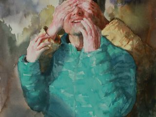 Xie Ai Ge creates the outline for her ‘lead’, a sculpture part of her “Tree Top” series. In this work reminiscent of the artist’s own childhood, she etches two figures, one boy and one girl, balanced on a black rock as their playful push and pull allows them to remain perfectly in sync. This whimsical work reminds the viewer of children’s banter, while asking them to ponder the balance between yin and yang and the natural order of the universe.