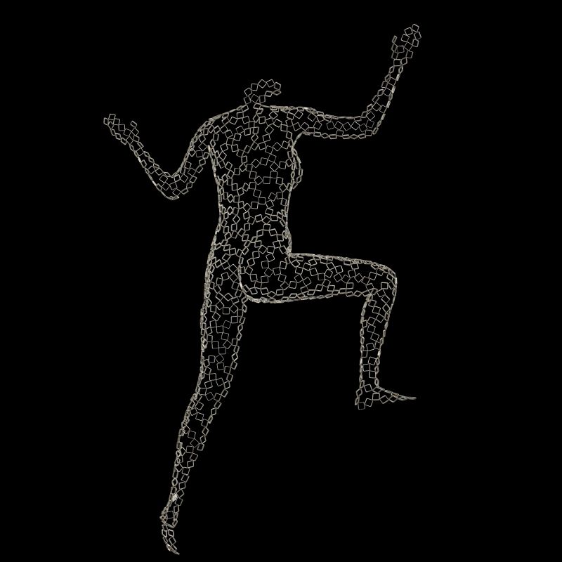 Rainer is fascinated by the human body - the classic theme of artistic expression and struggle, depicted in all shapes, materials and mediums since the existence of mankind. Rainer's sculpture captures the human body in motion - freezing gestures and emotions in time. The sculptures are both ethereal and tangible, made using hollow steel squares. In this piece, he depicts a running athlete to illustrate the tenacity and strength required by the sport. When darkness falls and the lights come on, the exquisite shadows of form, squares, body and spirit cast themselves upon the walls creating a second sculpture of light and shadow, adding a new dimension to the overall piece.