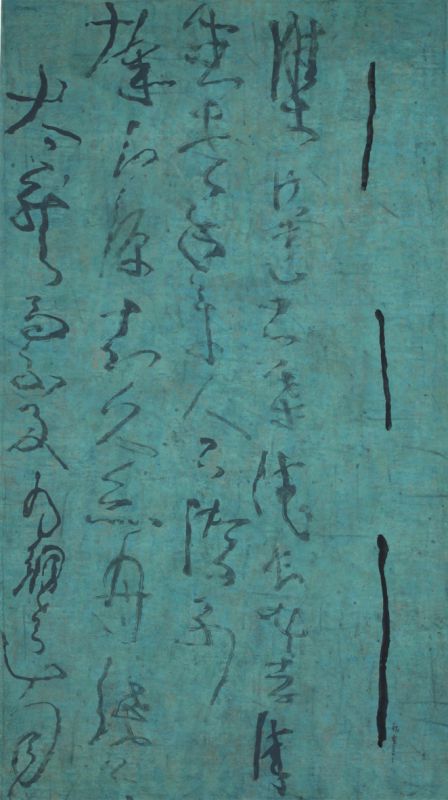 The cool blue Hong spreads across the canvas emanates a sense of serenity and wistfulness, encouraging viewers to enter a calm and meditative state of mind. The columns of quick calligraphic strokes imbue the work with a sense of spirited movement, creating the impression of the painting’s layers continuously emerging and receding from the forefront - the sense of movement being a defining characteristic of traditional Chinese painting. Yet this movement is balanced by the three strong vertical lines on the right of the painting, which exude stability and fortitude. Hong Zhu An wields his brush fearlessly as he charts new artistic territory, creating works that are innovative and pulse with artistic depth.
