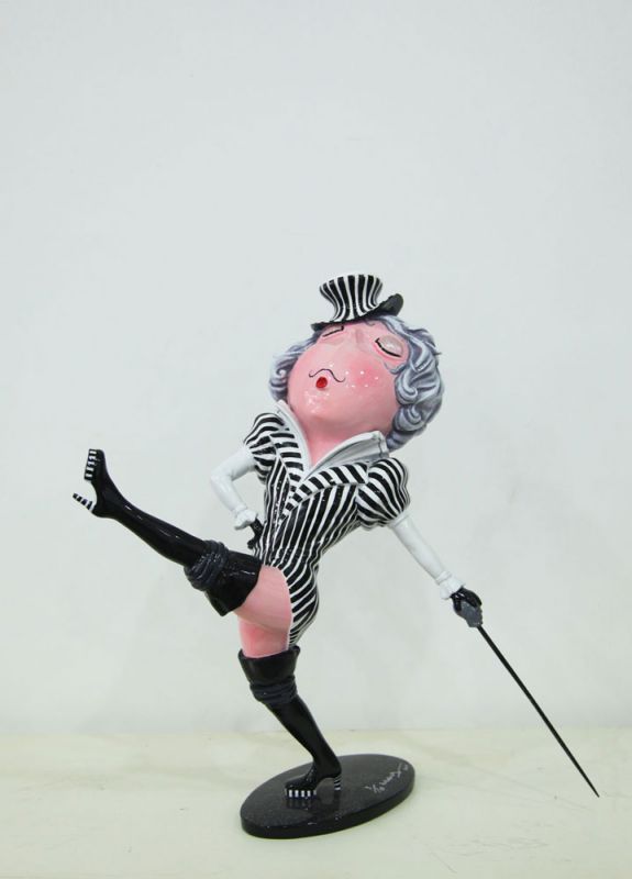 Through "Laura", Wu Qiong continues his exploration of figurative representation with a blend of humor and social critique. This androgynous figure, resplendent in theatrical cabaret clothing, embodies a spirit of unapologetic confidence. The artist's signature upturned face and closed eyes, usually associated with innocent idealism, here convey a sense of self-assurance, suggesting a deliberate challenge to traditional notions of identity and expression.