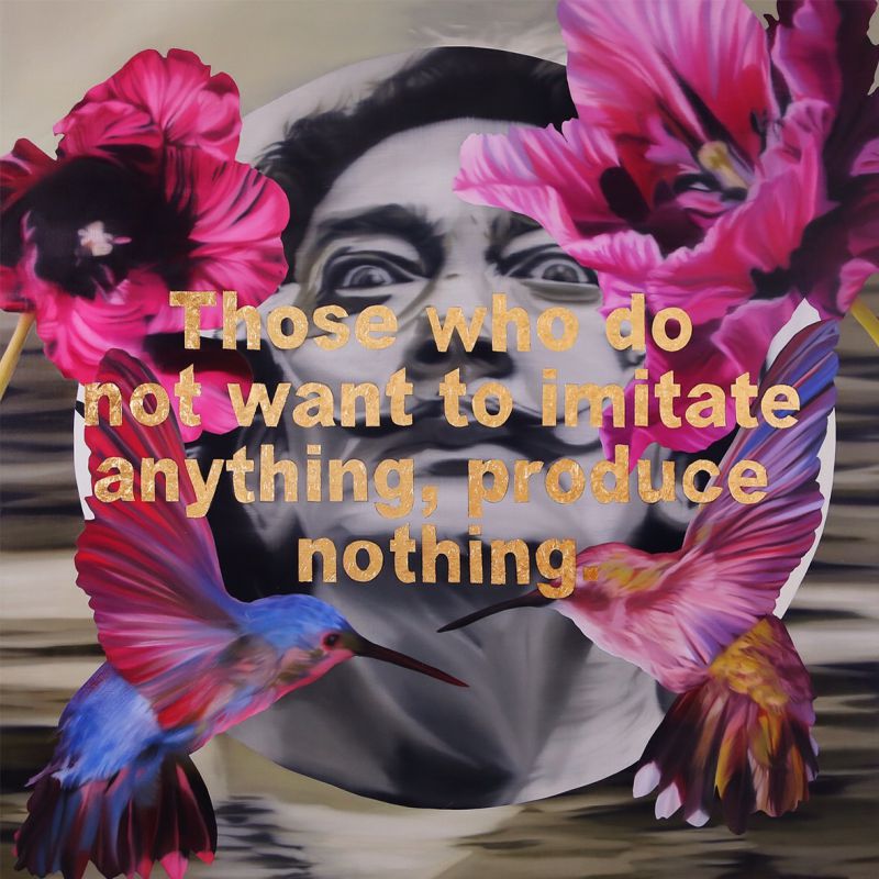 A Poetic Madness that employs an Artistic claim into an Artwork which is a redefinition of Modernism icons with the use of hyper realistic technique that succeeds to comprehend a post modern concept into its content. This Artwork particularly explains the profound knowledge of the Artist around the levels of Contemporary Art as history, background and aesthetics, while at the same time enriches the audience with harmony and visual balance.