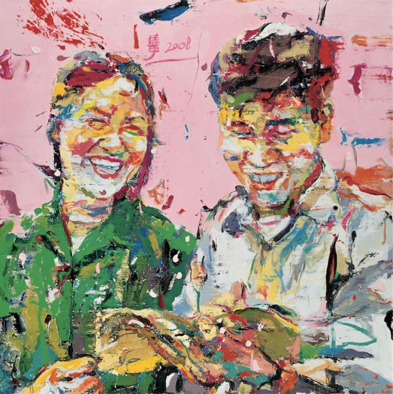 In this divergent series of works, Ren portrays multiple characters, in a manner that is unrestricted from the traditional formality of classical portraiture. The people depicted are mainly unknown figures going through everyday life, the nameless people we encounter daily. The title ‘你相信但你得不到’, translates to ‘you believe, but you are unable to do it’ in English, encouraging us to reflect on our own lives. Ren uses quick brushstrokes to depict the two figures in the work, imbuing it with a sense of energy and life that is reflected in their bright smiles. This spirited aura is reinforced by the artist’s skilful use of colour, as he mixes warm and cool tones to create a vibrant visual contrast, that is both captivating and heartwarming. Ren paints a portrait of the people, the anonymous, rendering them with dignity and joy.