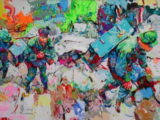 This painting by Ren Zhenyu depicts a Chinese policeman, who smiles brightly as he gazes downwards. While the subject appears cheerful, the largely monochromatic and cool toned colour palette conveys a subtle sense of wistfulness and nostalgia, that leaves the viewer with thoughts to ponder. The paint is thickly applied to the canvas, imbuing the work with dynamism that brings it to life, and creating a unique texture that heightens the visual experience for viewers, as if the artist has captured a fleeting moment that is soon to disappear into the past.