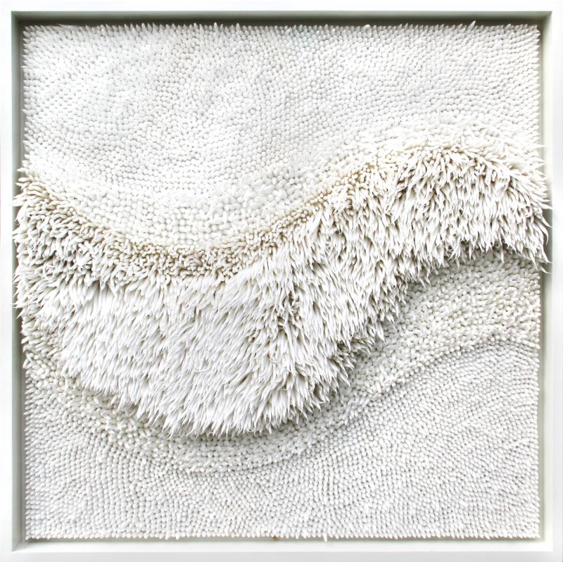 CSG - 136 ( JZ ) - Dedy Sufriadi utilises the unusual material of silicone on canvas, that creates a striking and fascinating texture. The work is rendered completely in white, conveying notions of purity, that link to the beginning of life when one is totally innocent and pure. Despite using the same material throughout, it is Dedy’s skilful placement and composition that imbues the work with life, creating variations of movement and intensity in different parts of the canvas, most notably with the climax appearing to be in the center of the work. Dedy’s style surprises and destabilizes, creating a strong visual impact through its dazzling blend of emotion and technique.