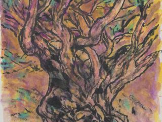 Lim Tze Peng’s transition to total abstraction comes after a lifetime of dedication towards perfecting the calligraphic form. His many explorations along this journey sedimented an individual style of more ‘muddled’ or cursive writing. Having cited French post-impressionist painter Cezanne as one of his biggest influences, it perhaps comes as no surprise that this cursive form would come full circle and combine into itself as a total abstraction. Saturated brush strokes here turn characters into Rorschach-like images, blending in yet contrasting with light coloured washes at the base. Tze Peng has turned conventional notions of negative space on its head by providing a distinct foreground but not clearly demarcating it. The hint of Chinese characters and seal lend an oriental feel, but the evident abstract nature of this work is perhaps one of the boldest the artist has put on paper.