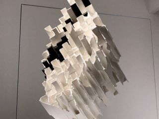 CSG - 136 ( JZ ) - Takeuchi Kozo’s sculptures are characterized by complex geometrical patterns that evoke the feeling of looking at ancient ruins. Yet simultaneously, the clean white geometric patterns are also meant to represent the architecture of today, prodding the viewer to consider that what exists now will one day be in ruins. Despite its fragmented nature, the sculpture appears to rise upwards in an imposing manner, highlighting the enduring presence that architectural marvels and works of art can continue to have, despite the passage of time.