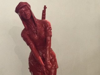 This sculpture by Chinese artist Huang Gang depicts a female soldier striking a dynamic pose, who appears to be swinging a golf club. The work is imbued with symbols pertaining to the Cultural Revolution, a period of social and political upheaval, yet the woman is shown to be partaking in a leisure activity. Huang Gang spent his youth in China during this period, and thus his personal memories and experiences of life during this time heavily inform his works. This nuanced sculpture thus explores the juxtaposition between relaxation and chaos, and discusses how periods of crisis affect people of various roles in vastly different forms.
