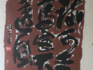 Another interpretation of a famous poem 《赤壁赋》by poet Su Shi, Lim Tze Peng pushes boundaries by adding color to this piece of calligraphy. The poem roughly translates to "A cool wind blew gently, without stirring up a ripple." One of Lim's uniquely developed abstract calligraphy.
