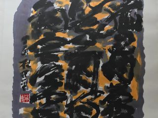 Using large, expressionist and cursive strokes, Lim Tze Peng inscribes the Tang Dynasty poem《出塞 》Beyond the Border by 王之涣 Wang Zhi Huan. This piece marks one of Lim’s latest works as he continues to experiment and explore the creative potential of calligraphy using vivid colours. Lim’s selective use of yellow and blue is akin to water flowing along the Yellow River and mountainous outlines on the sky as described in the verse. The bright and energetic colours accentuate the unique shape of the Chinese characters that form Lim’s signature breakthrough style 糊涂字 hutuzi , which in this piece emphasises on its aesthetic appeal rather than legibility. Yet the background also creates a striking contrast that draws attention away from the text and semantics. Lim therefore invites us to focus on the artistic expression of his work and its compositional structure. The final result is an abstract artwork and cohesive image whereby the amalgamation of painting and calligraphy is apparent. The poem《出塞》 reads:黄河远上白云间, 一片孤城万仞山, 羌笛何须怨杨柳, 春风不度玉关门。Wang reveals his sense of isolation and loneliness as he hears a familiar melody played on a bamboo flute, reminding him of his hometown.