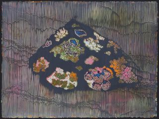 时间逝不去的意念 - No.3 (Unceasing Thoughts No.3) Chinese artist Jiang Miao addresses philosophical perspectives through unique constructions made from carved layers of acrylic paint. Cutting lines are distinctly visible, which represent the constant psychological movements of the mind. This work features a vibrant colour palette with a dazzling array of vivid colours reflective of the dynamism of thoughts we experience, and conveying a thrilling dream-like atmosphere. Yet the background of the work is darkness, in which an end to this landscape is not visible. Through her captivating works, Jiang organically integrates the concrete with the abstract, illustrating the otherworldly states our thoughts can take us too, that are both stimulating and unending.