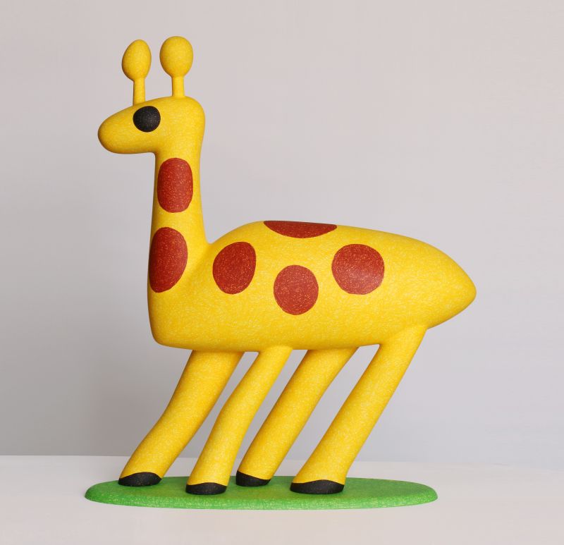 It is in this minuscule sculpture inspired by a giraffe that creates this caricatured creation. Obliterating details, Lee masterfully crafts this resin to a minimalistic recreation of this towering wildlife. As if Lee intents to create a portable piece to accentuate one’s home with.
