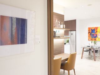 Lim Tze Peng’s transition to total abstraction comes after a lifetime of dedication towards perfecting the calligraphic form. His many explorations along this journey sedimented an individual style of more ‘muddled’ or cursive writing. Having cited French post-impressionist painter Cezanne as one of his biggest influences, it perhaps comes as no surprise that this cursive form would come full circle and combine into itself as a total abstraction. Saturated brush strokes here turn characters into Rorschach-like images, blending in yet contrasting with light coloured washes at the base. Tze Peng has turned conventional notions of negative space on its head by providing a distinct foreground but not clearly demarcating it. The hint of Chinese characters and seal lend an oriental feel, but the evident abstract nature of this work is perhaps one of the boldest the artist has put on paper.