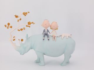 Indonesian artist Vani’s eye-catching works often depict music legends such as Bono, to illustrate the theme of harmony, in order to highlight how in times of increasing global social divide, music has the power to unite. In this work, a myriad of vibrantly coloured miniature figures come together to build a statue of Bono, and stand out against the monochromatic elements of the painting. Despite their different colours, representing their diverse backgrounds, they are united by the musician through this task. Through this symbolic work Vani thus highlights how the universality of the language of music can bring people together.
