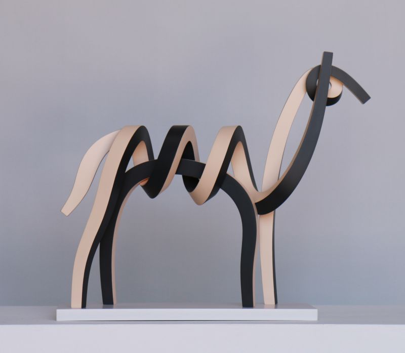 This ambiguous mammal welded on its four is intended to be a horse. Purposefully, stainless steel is spiralled from hind to top in order a minimalistic style can be achieved, it is in this sculptural assembly one find itself intrigue by the identity of this mammal.