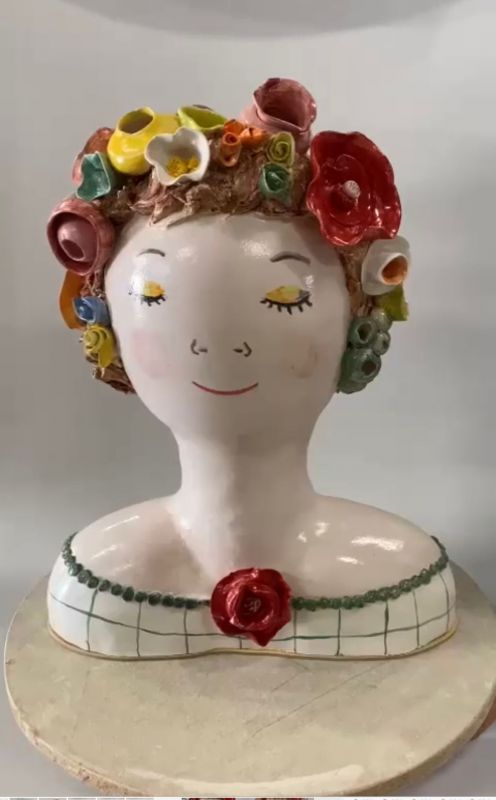 "En Flor" portrays a girl in a state of tranquil beauty. Her eyes closed, she wears a crown of vibrant flowers, symbolizing growth and blossoming. The delicate petals and lush foliage create a sense of natural abundance. Armisen's signature simplified features and soft colors evoke a sense of peace and harmony. "En Flor" is a celebration of inner beauty and the transformative power of nature.