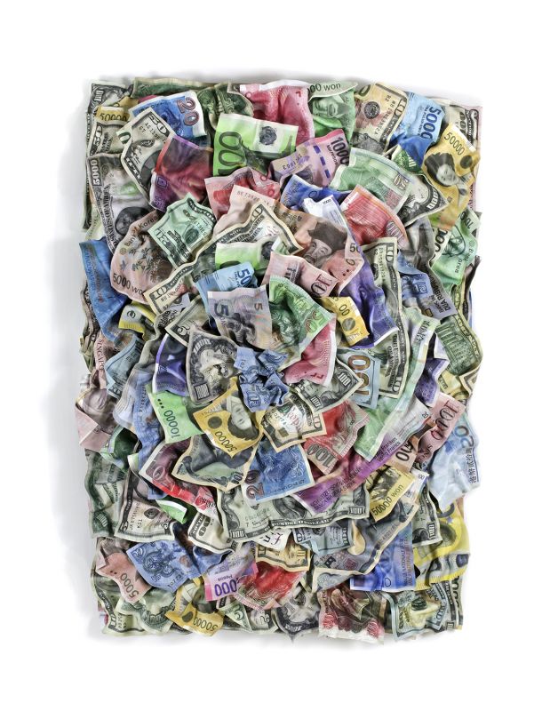 "Money Spout" by Paul Rousso is a captivating artwork that showcases a multitude of currencies from various nations. As a master of his craft, Rousso uses these diverse banknotes to emphasize the enduring power of paper money. Amidst the unstoppable wave of digital transformation, this thought-provoking installation serves as a poignant reminder of the diminishing role of paper currency. Rousso's creation invites contemplation on the changing landscape of finance and prompts viewers to reflect on the profound impact of technology on our monetary systems.