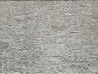 mixed media on hand sculpted polystyrene, 70 x 53 x 53 cm