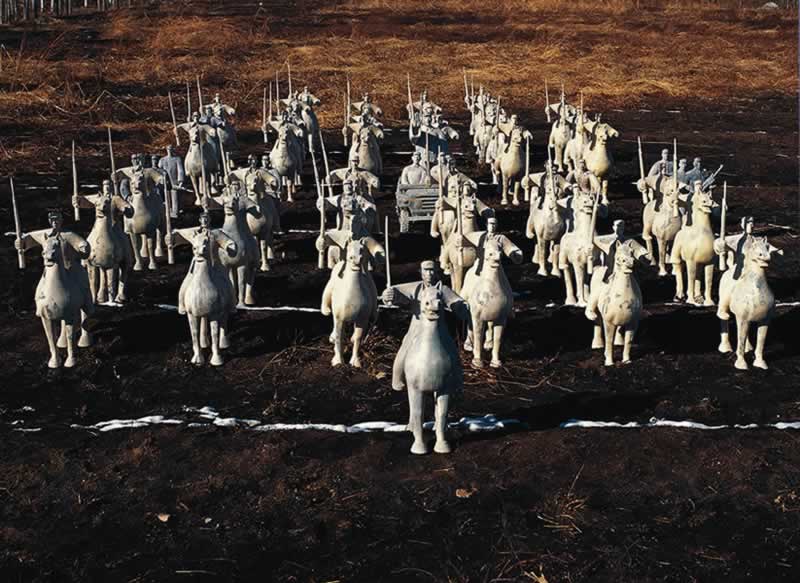 “Liu’s works all demonstrate a vigor that erupts in different forms and expressions. It must come from his youthful ambitions as well as those of a rising Chinese nation. That’s the most valuable thing in such an era lacking faith. Like Liang Qichao once said "faith is sanity. It’s the vitality of both people and society,” said Yin Shuangxi, a well known critic. In my perspective, Liu’s works are an outpouring of strength and momentum like roaring storms, running waves, lightening across the universe and thunders rocking mountains. This is exactly what our time needs. Though Liu’s works are still “man-made”, there’s no doubt that he has found an art form closer to life and souls. Spirits vanish when artists treat grand propositions like “temporal spirits” with profiting desires. Art only transcends technical levels when artists get lost in their own creation and enter a spiritual experience. Liu’s works are created by following his heart and that’s why his works exhibit a harmonious inner strength. They are neither pure and simple art works, nor “spiritual duplicates” against art, but aesthetic perceptions of soul. I remember Hegel once made such an aesthetic judgement: in symbolizing art, material forms weigh heavier than spiritual contents; classical art is the perfect combination of material forms and spiritual contents; in romantic art, spiritual contents weigh heavier than material forms. According to this classification, I tend to regard Liu’s works as romantic art. People perceive an ideal and passion of an era in Liu’s magnificent works such as The East is Red, Heaven Soldiers, People, Asking the Heavens, Wolves are Coming and Guard of Honor with Cars and Horses. Liu’s works are more about his emotions and ambitions. The appeal of sculptures not only comes from sculpture itself, but also from its connotations. There are ambitions fulfilled as well as failed. It is these cultural deposits that led Liu’s works to a splendid state of "a gale has risen and is sweeping the clouds across the sky".