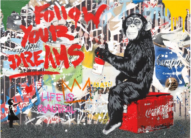 His artworks have been exhibited at prominent institutions such as the Museum of Contemporary Art in Los Angeles and have been collected by celebrities and tastemakers worldwide. With a flair for spectacle and a message of positivity, Mr. Brainwash invites viewers to embrace creativity, challenge convention, and “follow their dreams.”