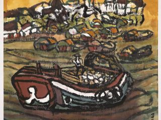Bathed in the warm hues of twilight, Lim Tze Peng’s masterpiece features the iconic Victoria Memorial Hall in the background. A bumboat, filled with treasures, glides silently on the river, embodying the essence of a bygone era. The heritage buildings surrounding it whisper stories of Singapore’s rich history. With vibrant colors and bold strokes, this serene scene invites viewers to reflect on the journey of a nation intimately connected to its waterways.