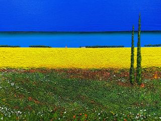 Tjokorda Bagus Wiratmaja was born in 1984 in Gianyar, Bali and enrolled in SMK N1 High School Sukawati with a specialization in Art, going on to graduate from The Indonesian Art Institute (ISI) in Yogyakarta with a Masters in Fine Arts. Tjokorda creates artworks stemming from intense emotion and fearless color exploration, with layered and textured canvases that sometimes use elements such as sand and pigment powder to achieve their finishing.