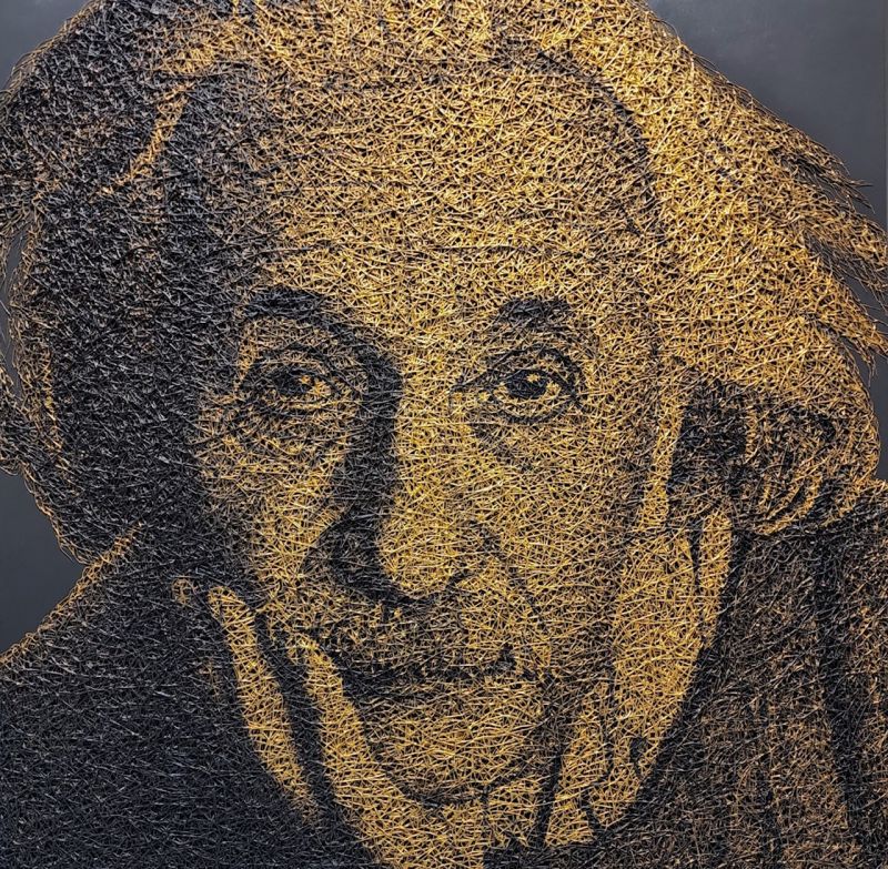 Chansrinual's portrait of Albert Einstein, executed with the intricate piping technique, presents a compelling visual study of the iconic physicist. The artist's meticulous layering of piped lines, in contrasting tones, captures Einstein's distinctive features and contemplative expression. The use of gold-toned piping could suggest a nod to the brilliance and enduring value of Einstein's contributions to science. The texture created by the raised lines lends a tactile quality to the artwork, inviting closer inspection. This piece serves as both a portrait and a testament to Chansrinual's mastery of the piping technique, transforming paint into a sculptural medium.