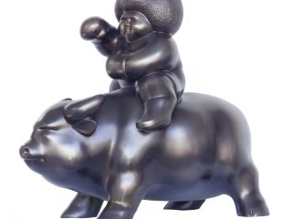 Born in Yogyakarta in 1974, Adi Gunawan received his education at the Institut Seni Indonesia. He is a prominent Indonesian sculptor known for his distinctive and often playful and satirical bronze sculptures. In his symbolic sculptures, Adi invokes exploration of themes related to human behavior, social issues, and cultural traditions. He uses his cultural positioning as a tool to visualize motions, gestures, characters and expressions of various subjects that he sculpts. He often incorporates elements of Indonesian folklore and everyday life, giving his pieces a rich cultural context. Growing up in an Agrarian society, he depicts a lot of animals in his work. The symbiotic and mystical relationship between animals and humans is well expressed in his artworks.