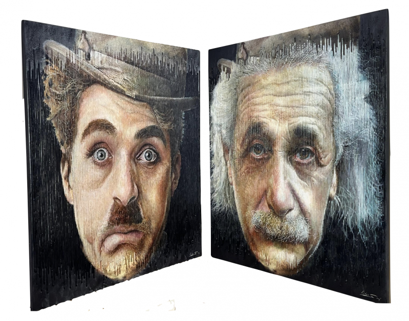 Sergi Cadenas is a self-taught Spanish artist who began painting at the age of 30. Known for his innovative lenticular-style technique, he constructs large-scale canvases with vertical ridges, painting distinct portraits on either side. As viewers move around the work, one image seamlessly transforms into the other—an optical illusion that demands extraordinary precision and patience. Cadenas is currently dedicated to creating large-format portraits that explore identity, perception, and transformation. His works are held in international private collections and are also part of the Porrentruy Optical Art Museum (POPA) in Switzerland.
