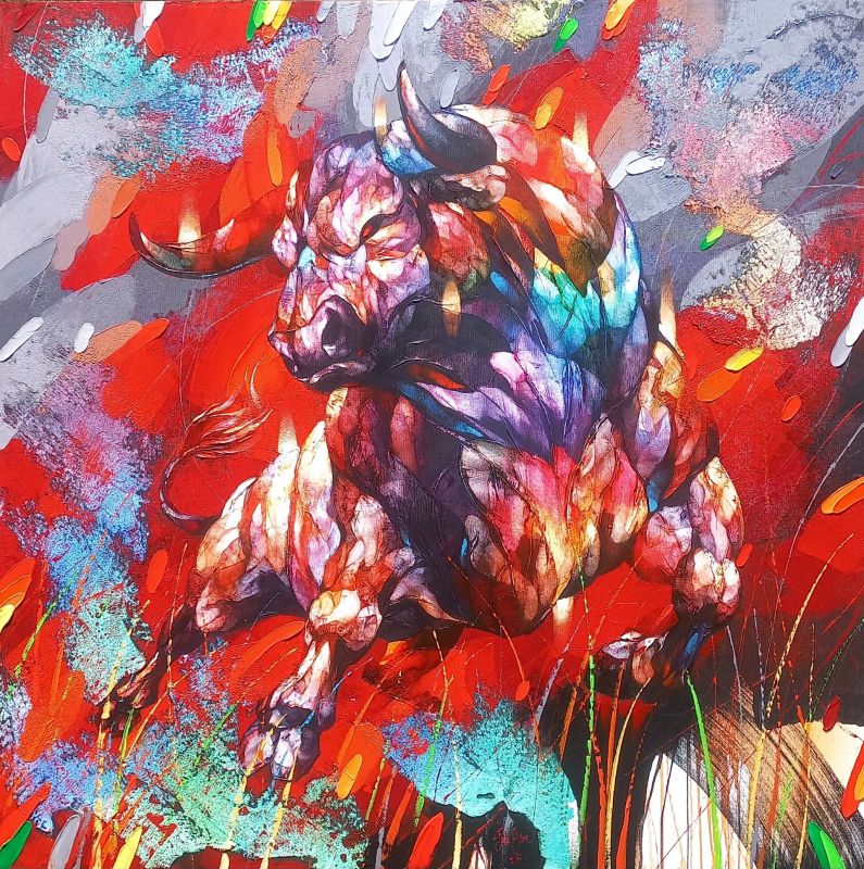 Tjokorda Bagus Wiratmaja was born in 1984 in Gianyar, Bali and enrolled in SMK N1 High School Sukawati with a specialization in Art, going on to graduate from The Indonesian Art Institute (ISI) in Yogyakarta with a Masters in Fine Arts. Tjokorda creates artworks stemming from intense emotion and fearless color exploration, with layered and textured canvases that sometimes use elements such as sand and pigment powder to achieve their finishing.