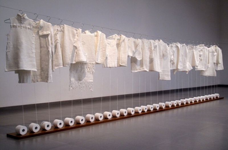 Wang Lei questions the quality of everyone’s approach to the matter of creating a new social identity in this innocuous series of toilet paper cloths. The process of making the artwork with his own hands and the dedication he puts in to knit each one of the cloths accurately, demonstrates how he admires the traditional ways of reproducing time-consuming handmade traditions in different designs, forms, patterns and styles in order to create profound visual conversation. The primary feeling that is evoked when one views Wang Lei’s artworks is the sanctity contained in a delicate piece of handicraft work. As we reflect on this feeling of warmth, it is perhaps a candid recognition of the quality of choices and the background of our customs that define us as a responsible member of our society.