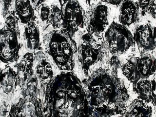The Pressure of Studying features three figures of boys tilted at an angle, seeming to charge in three different directions. The chubby cheeks of the boys in Wu's subject matter are symbolic of the inflated desires that youths today possess. The heads of the boys are exaggerated as compared to the rest of their bodies, reflective of the emotional and physical burdens which youths today carry as a result of striving for what society pressures him or her to achieve, which is to study hard and be much more acomplished in life than the others.