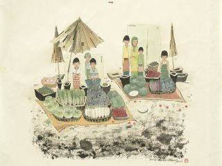 Wu Liang Yan’s distinctive cherubic style of depicting children is often contrasted with situations and compositions that cross into those far beyond their age or expected capabilities, exposing the darker, less reflected on sides of society that have taken over modern existence. In National Treasure- Popped Up The Universe, the viewer is shown a yet another innocent child- chubby, half dressed and eyes closed in seeming blissful ignorance. However, he holds above him a cloud, while standing upon a rock- as if carefully balancing on one while holding the other stable; Such a serious implication of holding up the heavens while rooted to earth makes the child seem out of place- as if such a task is not for one so young and innocent. Both cloud and mountain are powerful symbols in Chinese culture, symbolizing a quest for peace and convene with nature. They may also signify the material world and that of dream, ambitions and imagination. The child shown between both then brings to mind an entrapment- as if he is caught in the middle of either, not fully able to step either way. Society’s expectations and pressures ground him and yet, being a child, his mind lies in the world of flights of fancy- where he is unable to live out his childhood in peace. This is the tragedy of today’s youth, in the eyes of Wu Liang Yan.